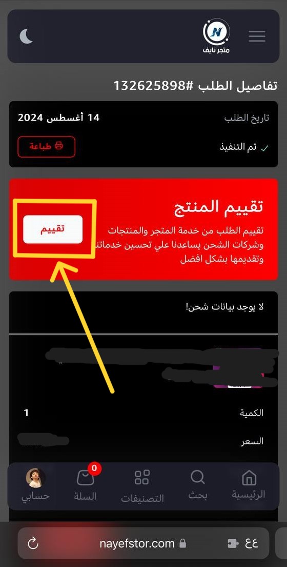 - إذا لم تجد خيار التقييم مباشرة، حاول البحث في قسم "طلباتي" داخل حسابك على سلة، حيث يمكنك تقييم المنتجات التي قمت بشرائها.