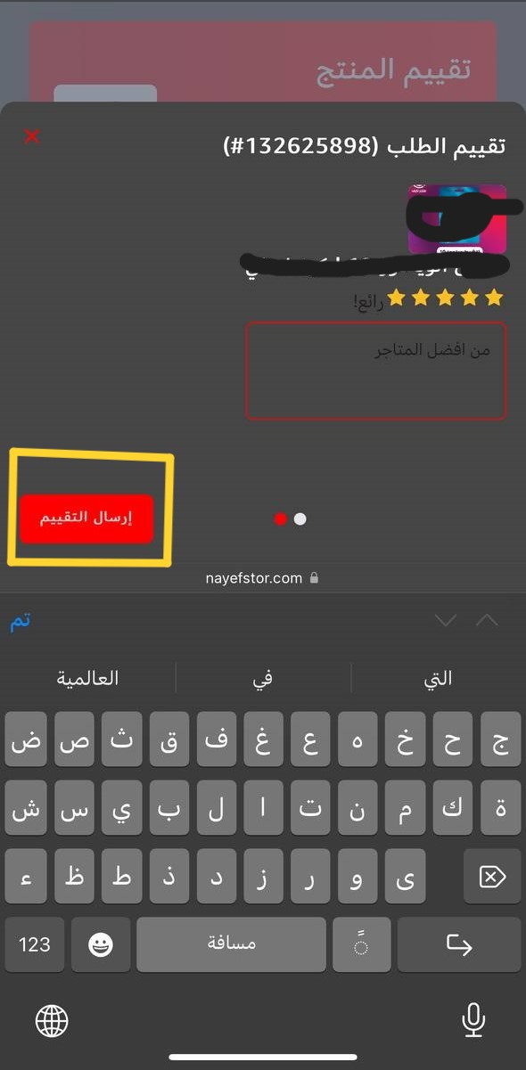 - اختر رقم المنتج أو الخدمة التي اشتريتها من متجر نايف والتي ترغب في تقييمها.