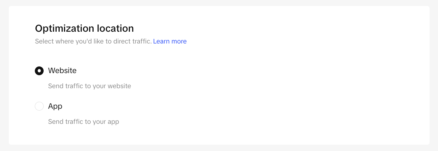 حدد ما إذا كنت تريد توجيه الزيارات إلى موقع الويب الخاص بك أو التطبيق .