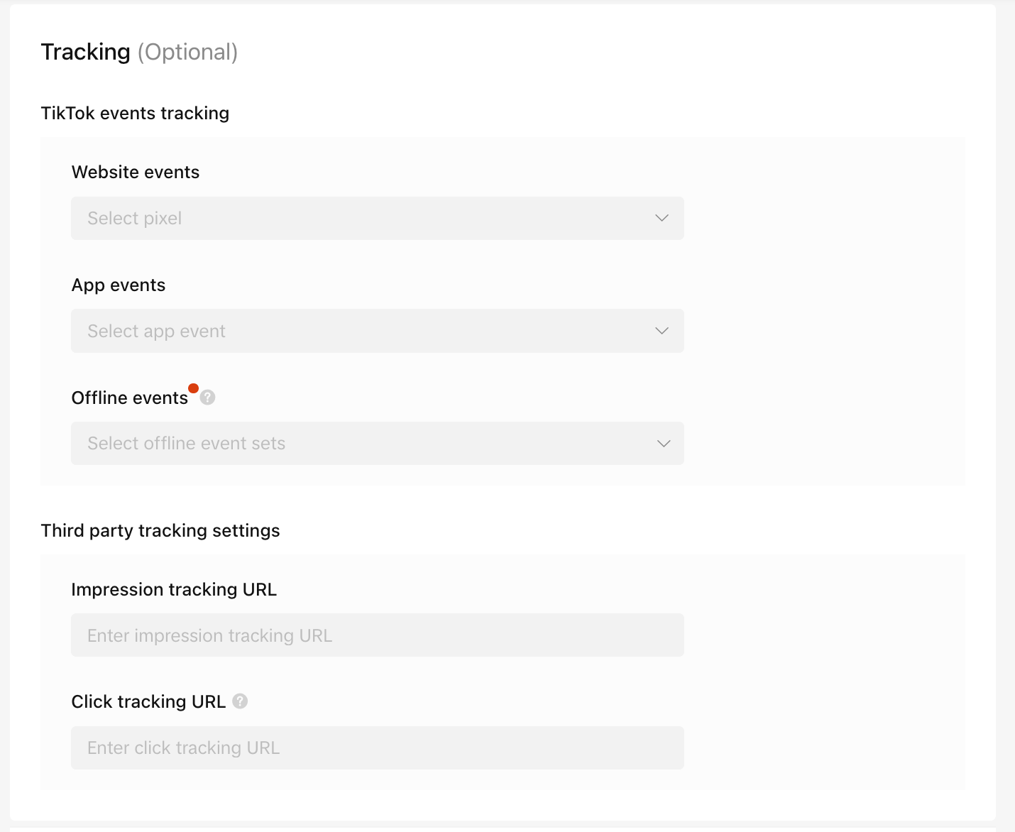 أضف التتبع لموقع الويب tracking والتطبيق والأحداث غير المتصلة بالإنترنت offline events، بالإضافة إلى التتبع من جهات خارجية لمرات الظهور impressions أو النقرات. خطوة تحديث إعدادات التتبع اختيارية optional .